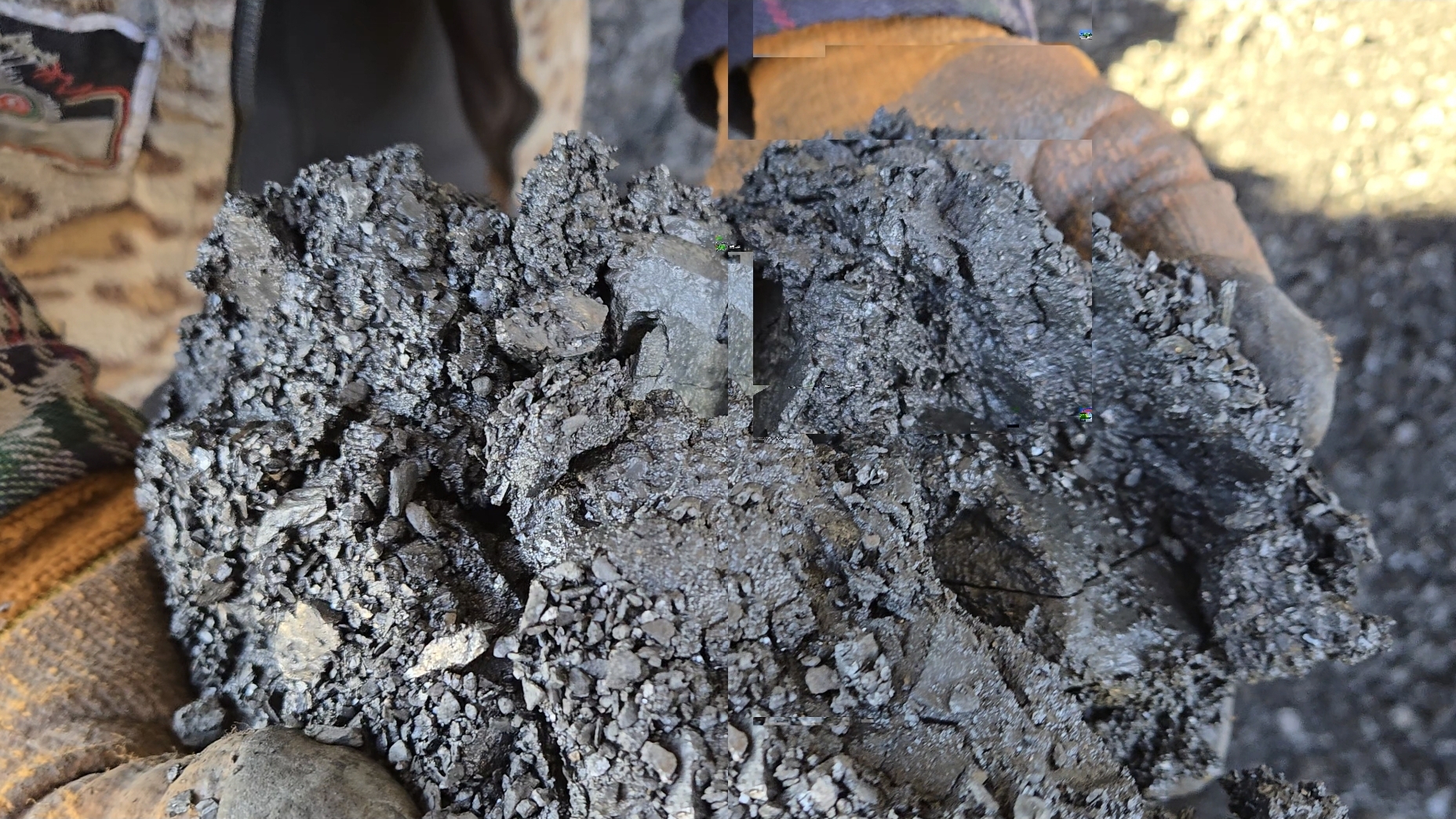 Пока собирали канистры для дизельки мы обратили внимание на запасы твёрдого топлива (угля) который хранился на территории. Осмотрев внимательно уголь депутат Николай Жогалев и главный редактор СМИ «Туапсе Инфо» Валерий Хот заметили, что в угле имеется похожая на глину примесь. Такой «уголь» не горит и тепла давать не может.
